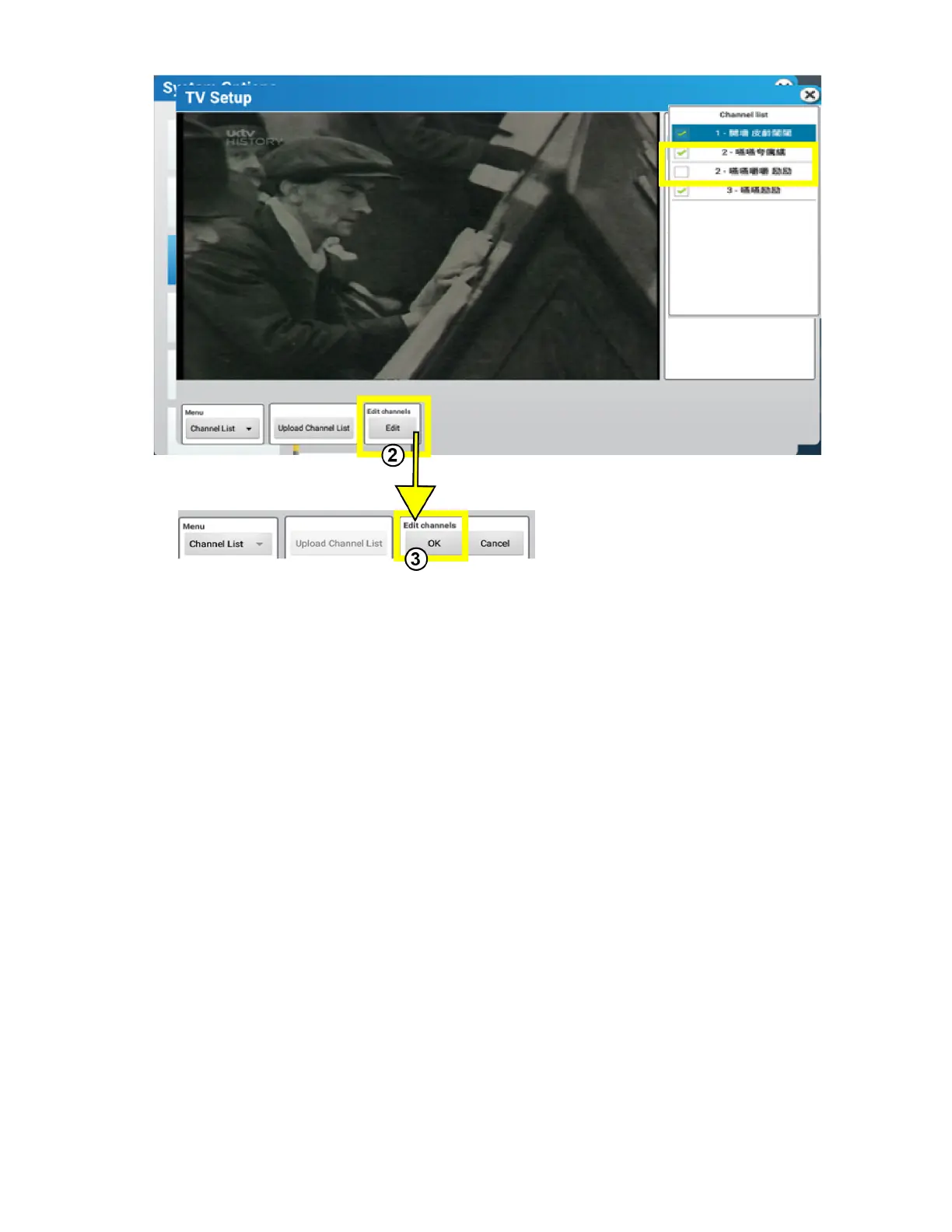 2. Select Edit to edit the channel list. Uncheck channels to hide the channels from the user. Hidden channels will not be options
