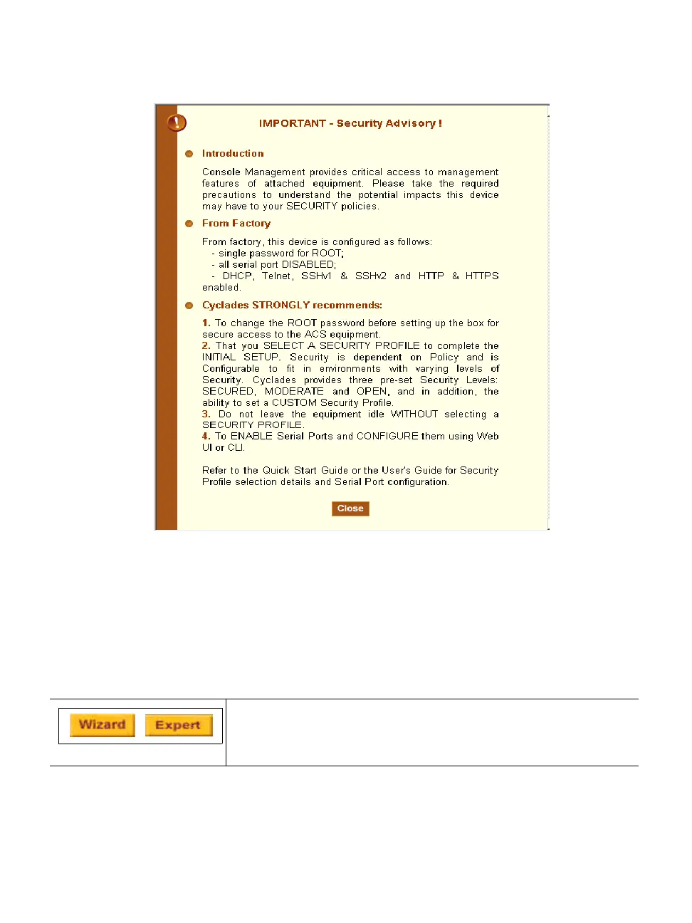Figure 4-4: Administrator > Security Advisory Message