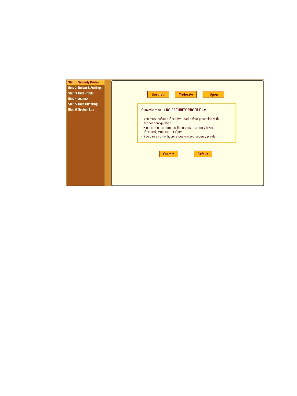 3. The Web Manager is redirected to Wizard > Step 1: Security Profile.