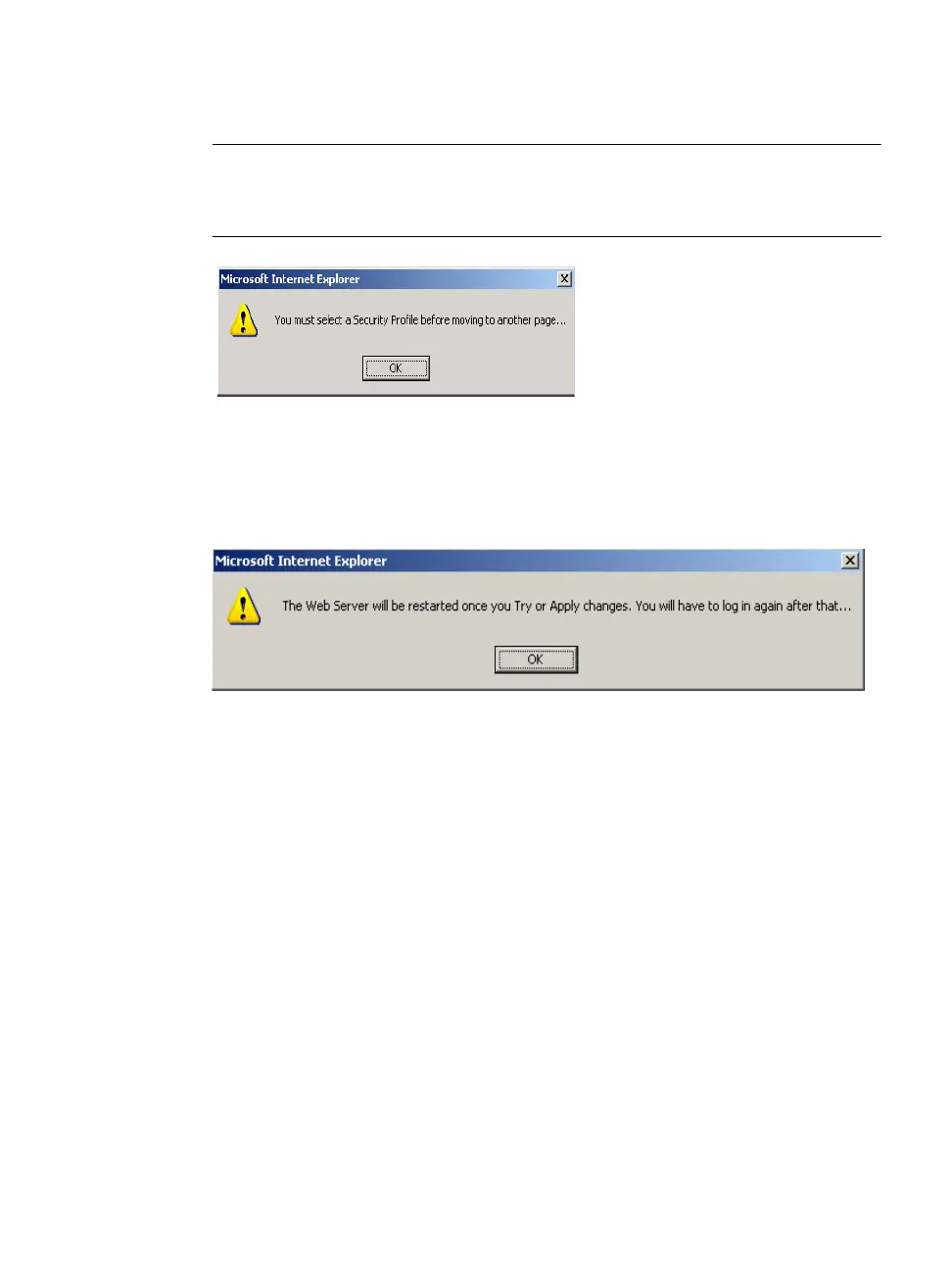 Note: It is not possible to continue working in the Web Manager without selecting a