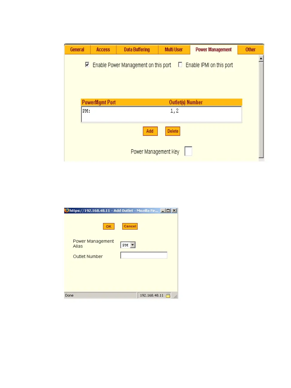 Figure 7-21: Expert > Power Management Add Outlet Dialog Box