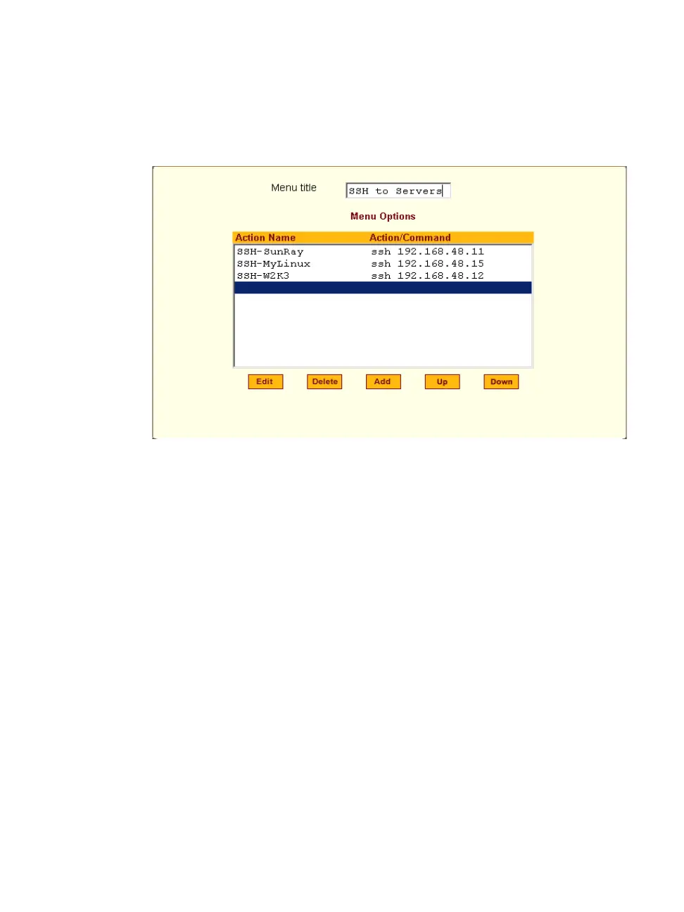 For example, you can create a menu called “SSH to Servers” with options that