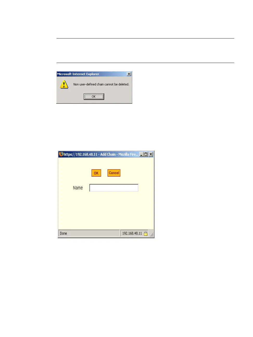 Figure 8-24:Firewall Configuration “Delete Default Chain” Message
