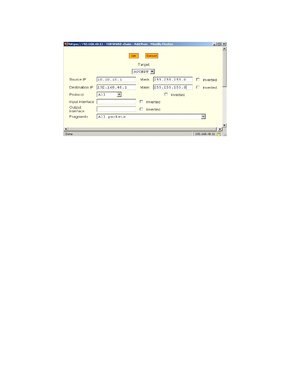 down list, check “Inverted” on the line with the “Source IP”, and do not