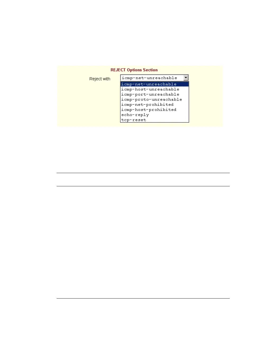 If REJECT is selected from the Target pull-down menu, the following pull-