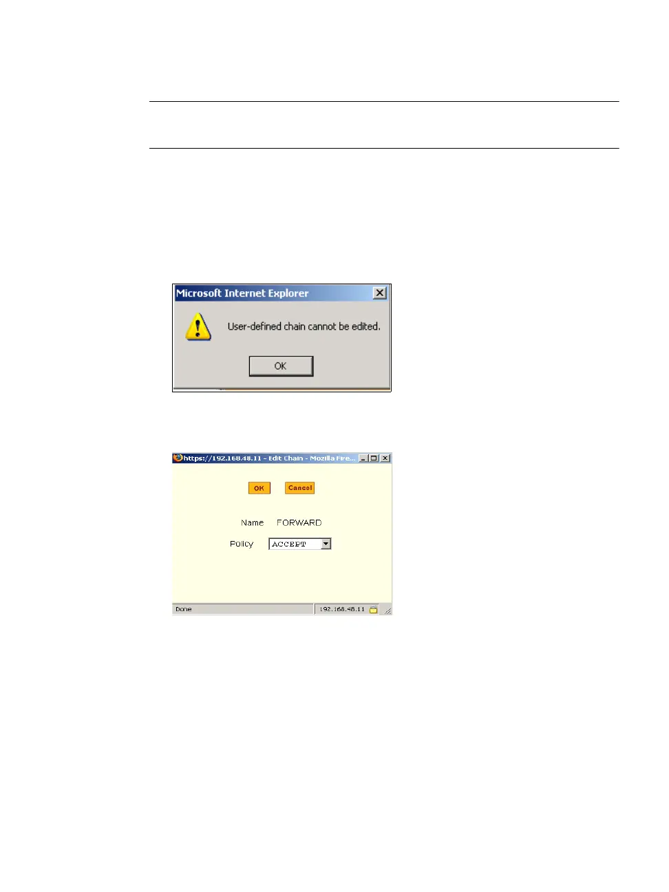 If you select a user-defined chain, the dialog box shown in the following