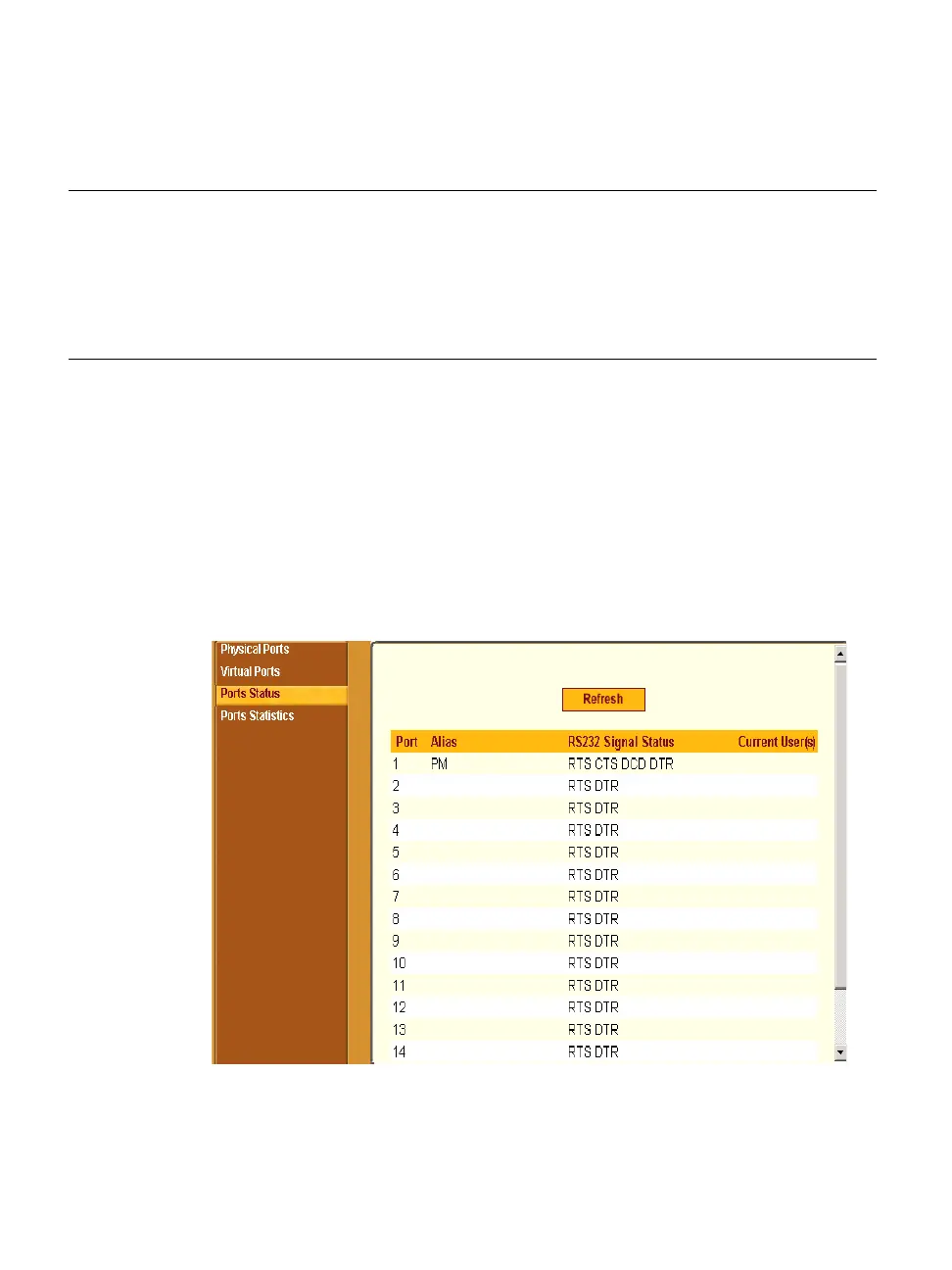 • Ports Statistics – Allows you to view serial ports connection statistics.