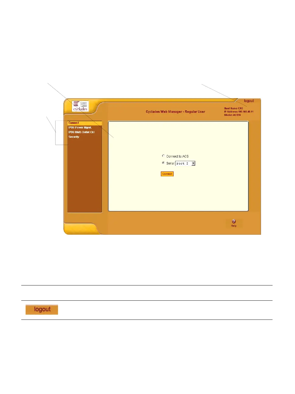 Logout button and ACS information area