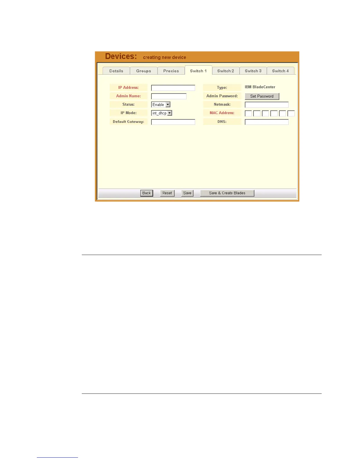 Table 4-5: Devices, Switch 1 Form - Fields and Elements