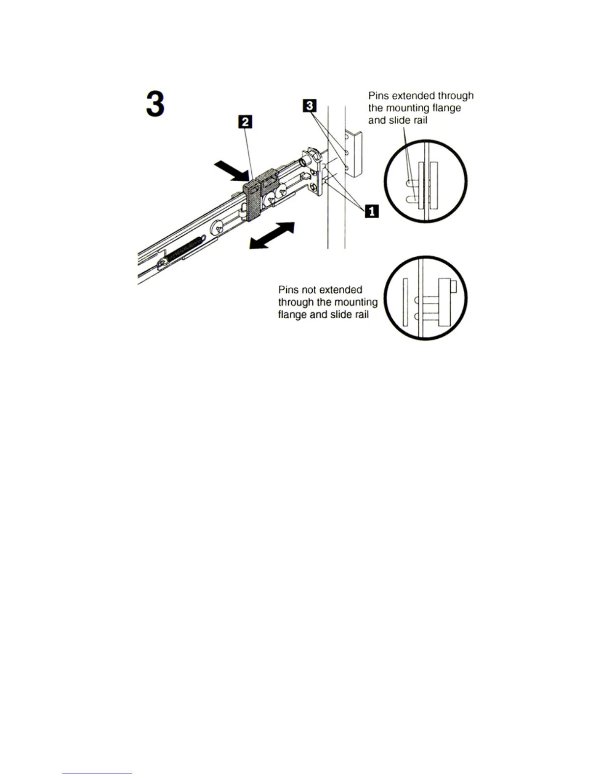 c. Press the tab (2) to secure the front of the slide rail to the front