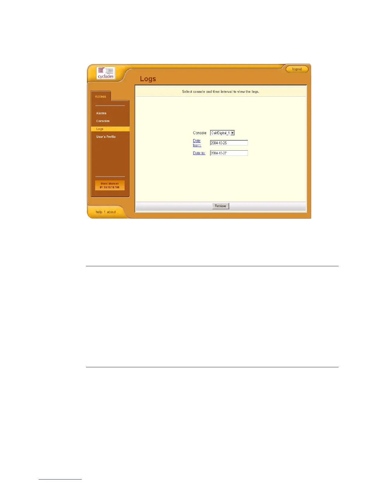 Retrieve Button to download the requested log(s) and