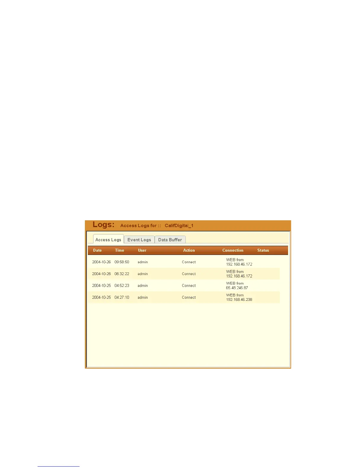 Use Access Logs form to view the Access Logs, Event Logs, and Data Buffer