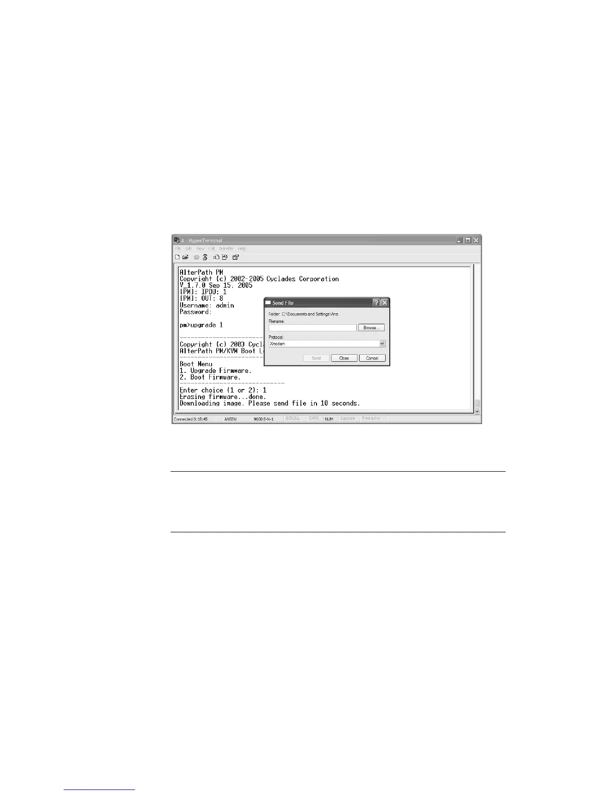 firmware file to the AlterPath PM using the Xmodem protocol.
