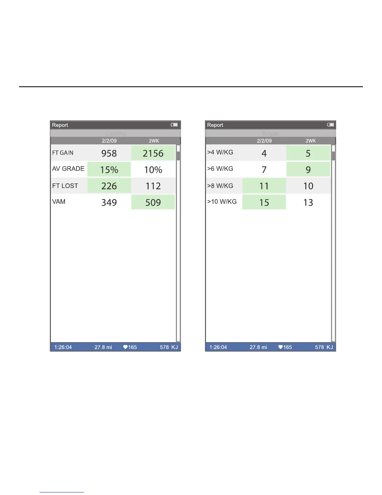 and lost, vertical ascent (VAM) and grade.