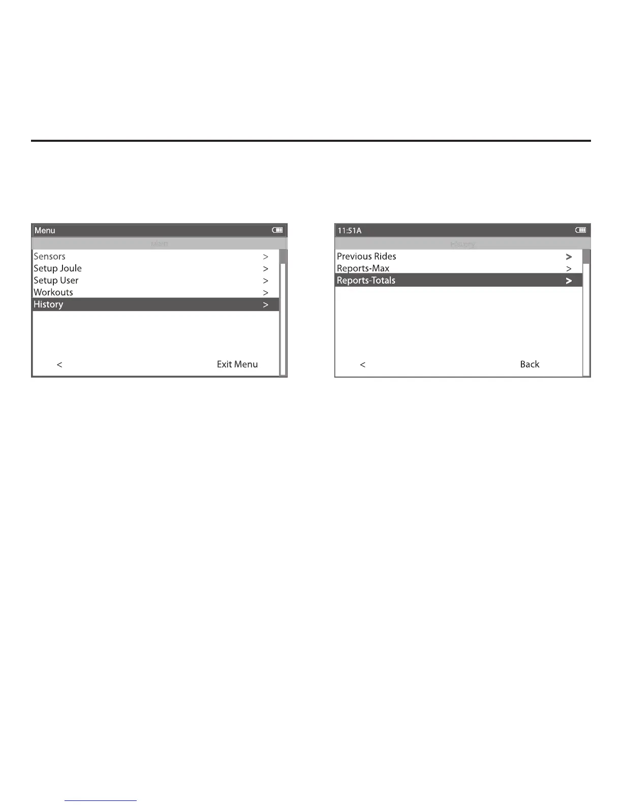 4. Press [JOYSTICK] in and release to select Reports – Totals. Note: Reports are now shown with 3 columns; the