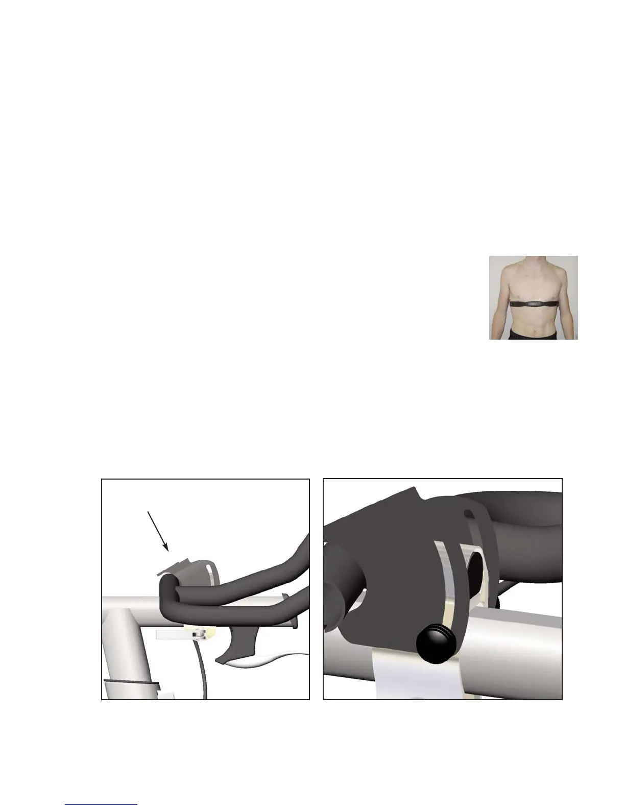 placée juste en dessous des pectoraux de la poitrine. Assurez-vous que les électrodes de la sangle sont légèrement