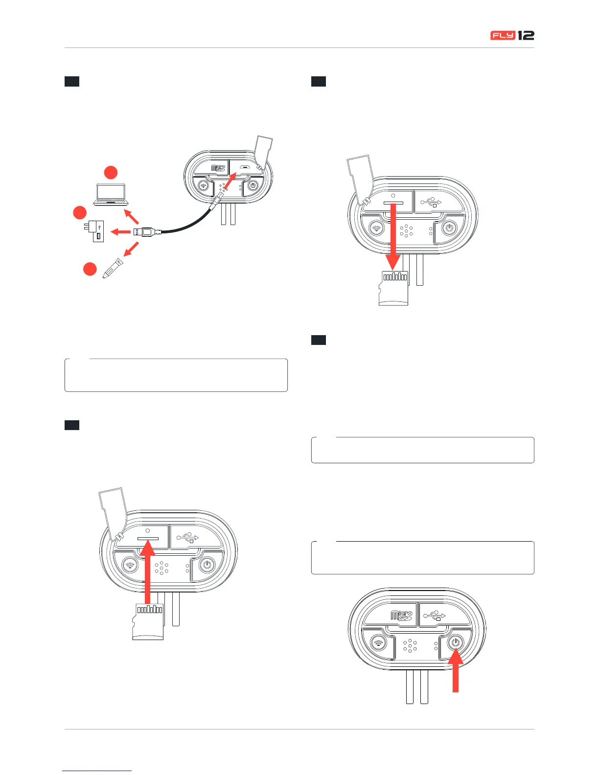 Fly12 can be charged in any of the following ways: