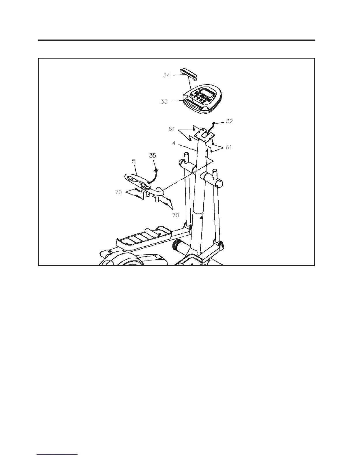 (M6 x 40mm)(70). Plug the PULSE PLUG WIRE(35) into the back of the COMPUTER(33).