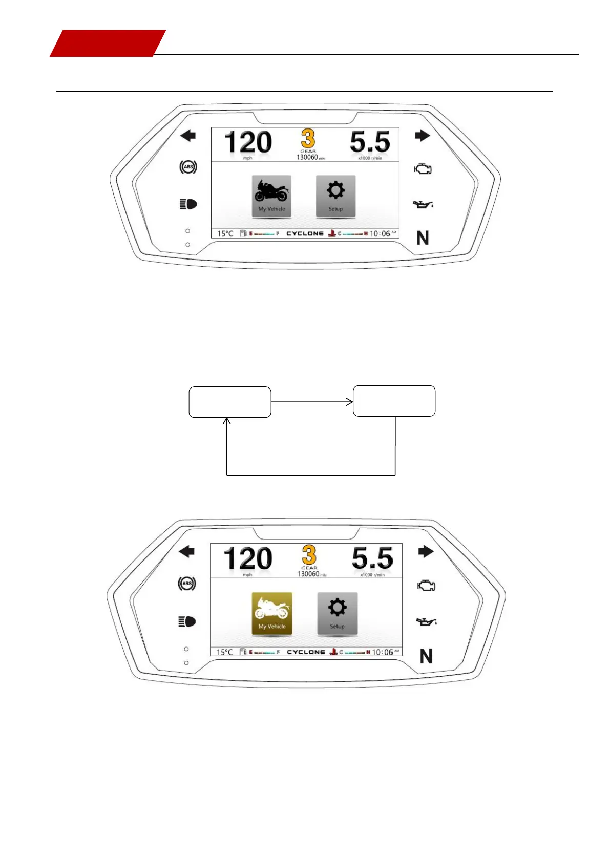 Press switching confirm option and then press [SEL key] for entering: My Vehicle sub-menu.
