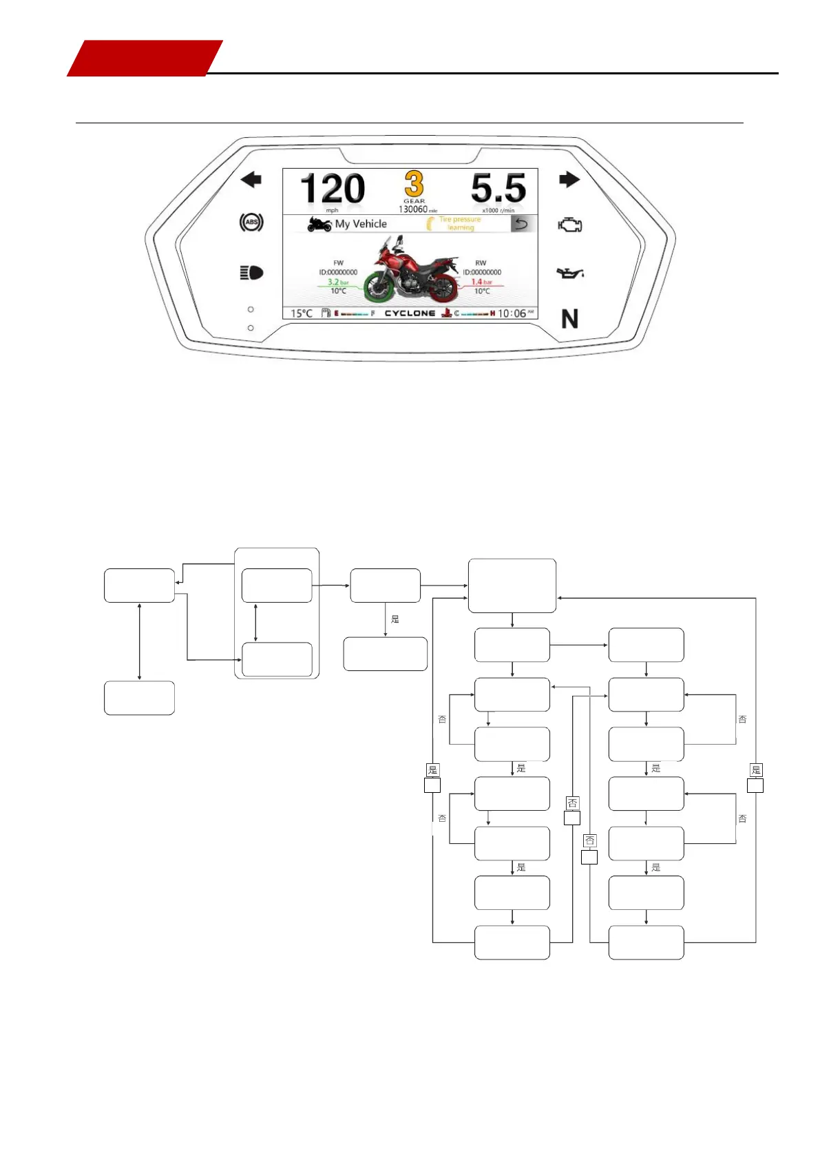 The front tire turns red, normally on, and