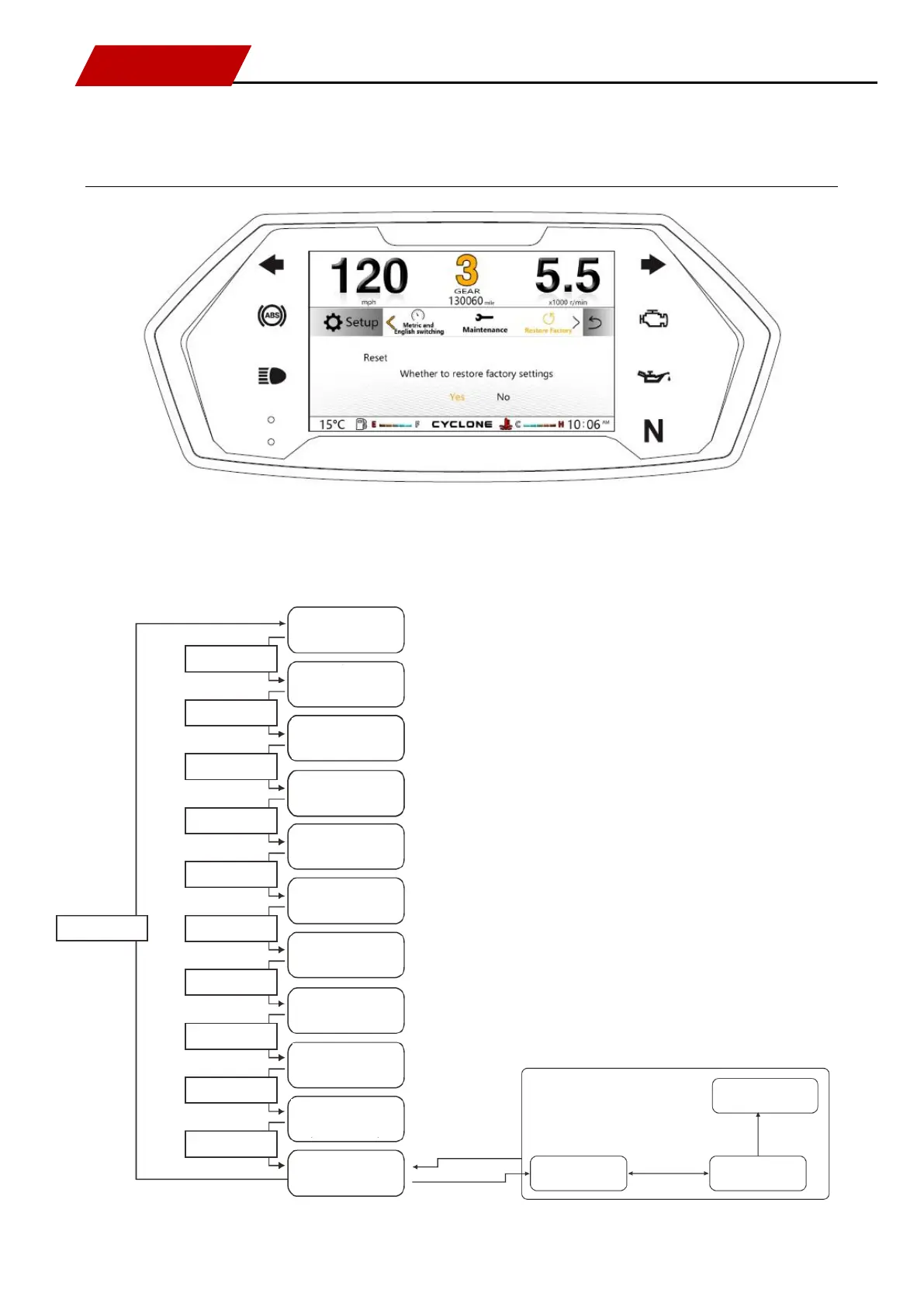 Press [SEL key] for switching: factory reset.