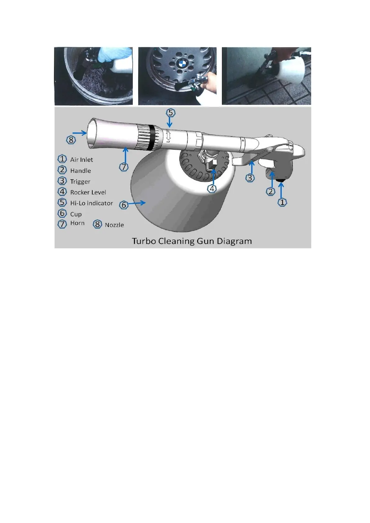 4 Make sure that one end of a hose connected with an air-compressed source and