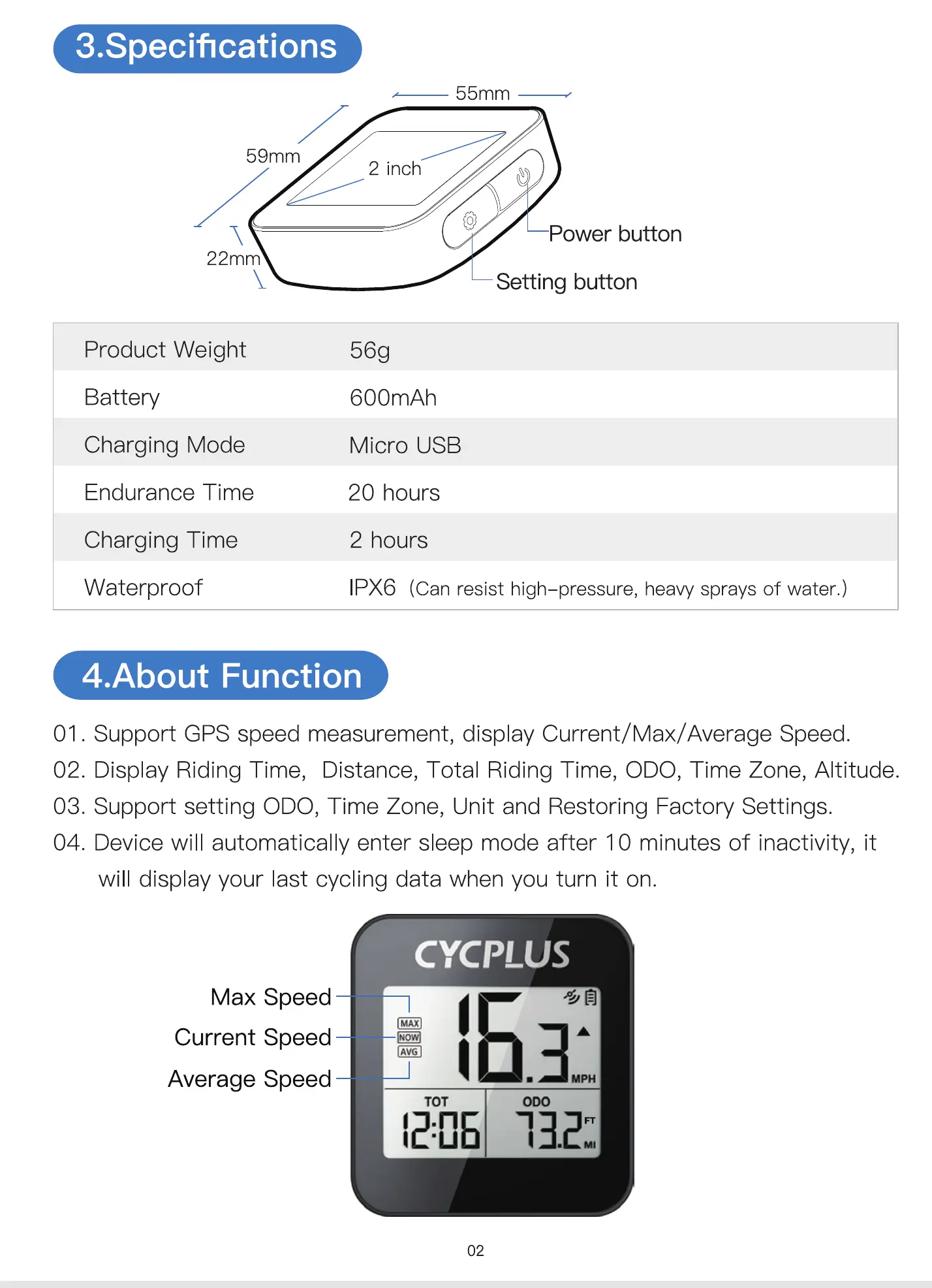 01 . Support GPS speed measurement, display Current/Max/Average Speed.