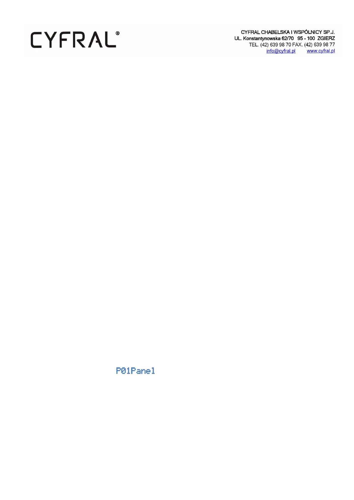 Main features of the panel configured as 'MASTER'