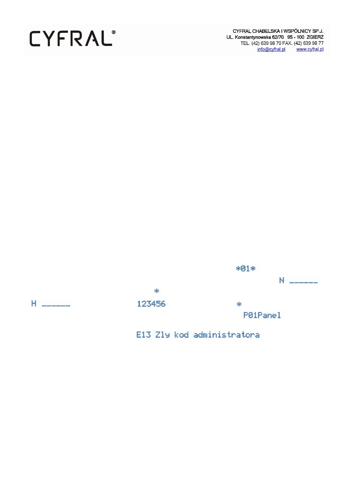 the display there will appear a field for entering the serial number of the panel (PC-4000 board)