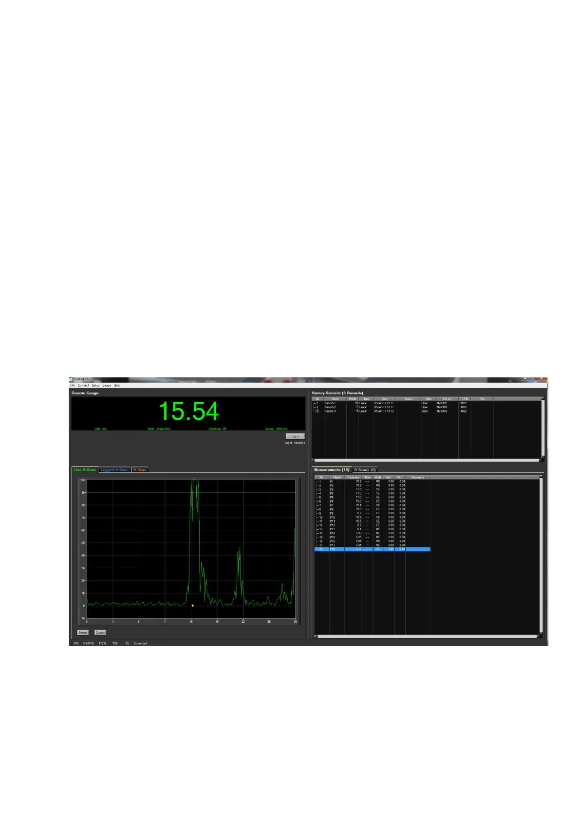 CygLink have the facility to store logged thickness measurements