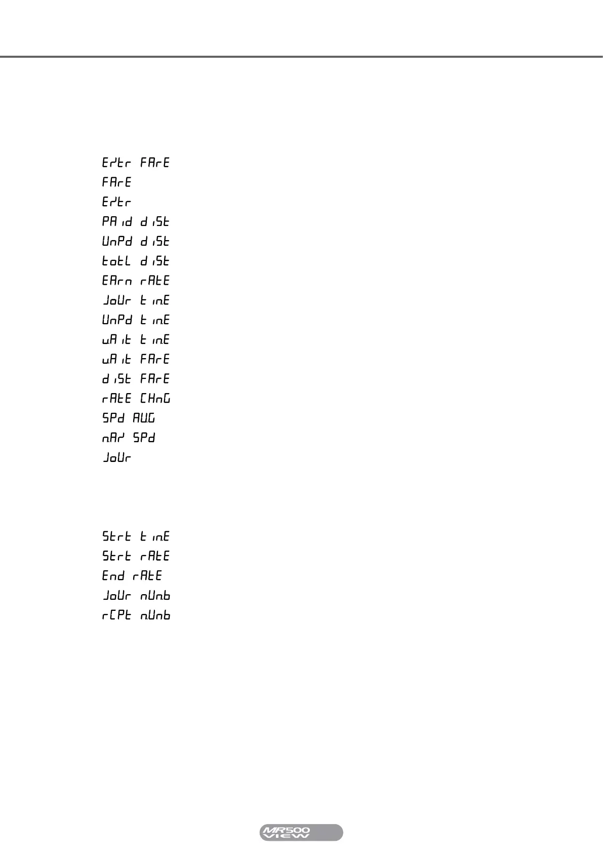 or printed by the MR500 View are: