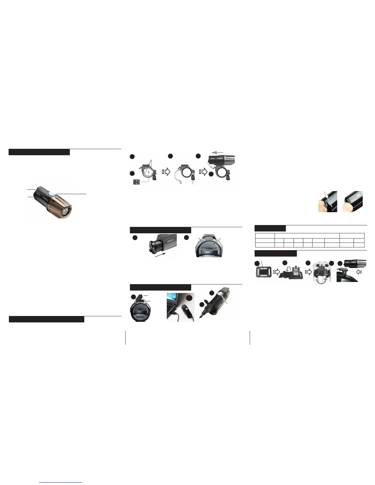 “C” arrow on headlight) to lock battery into the headlight.