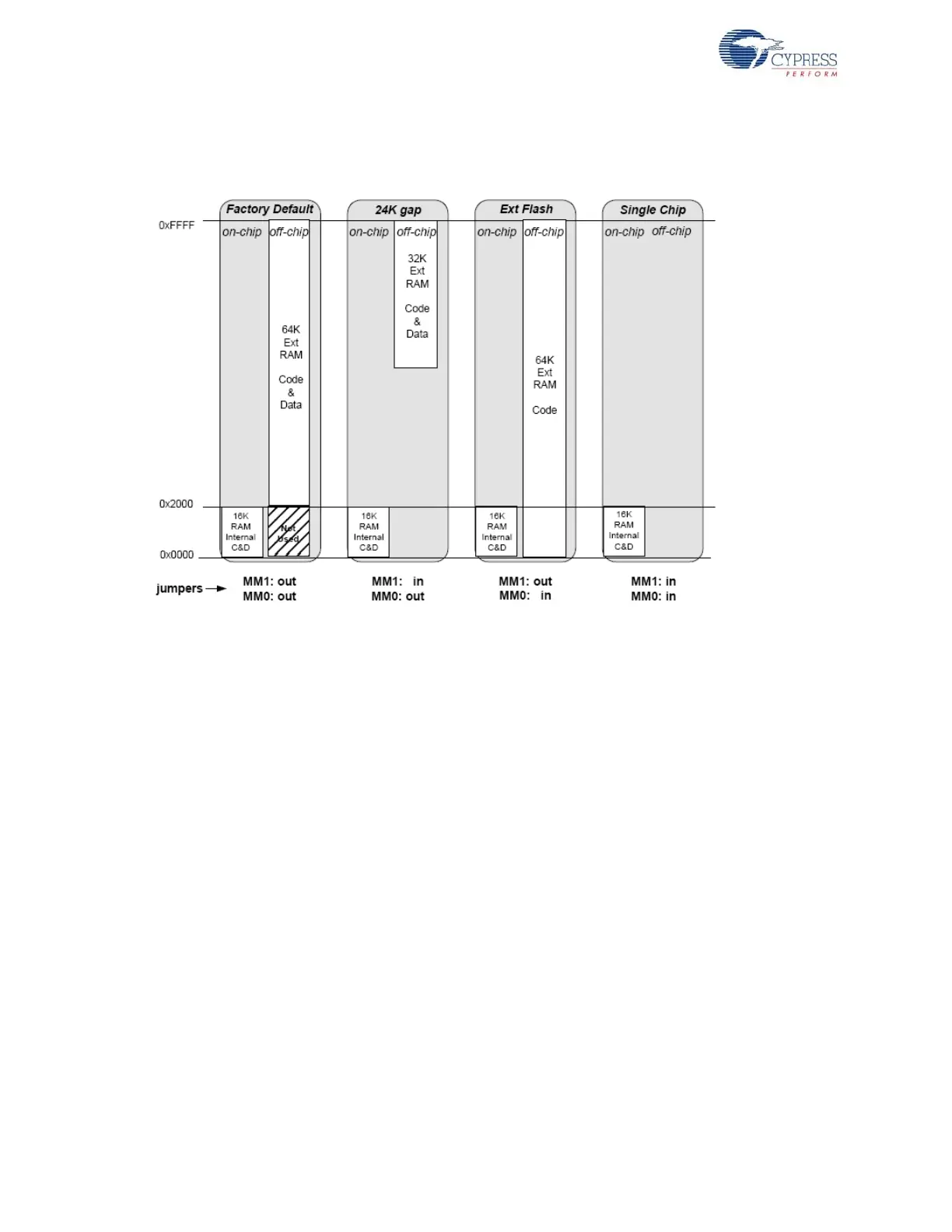 ■ The second column, “24K gap”, enables the external RAM only for access to its upper 32 KB.