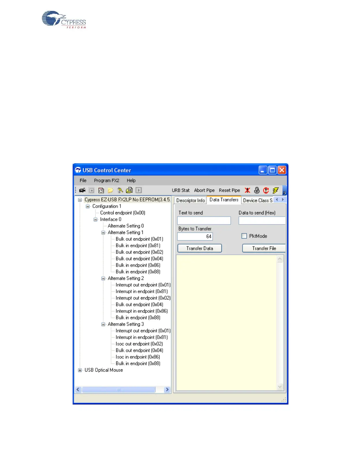 firmware example is downloaded (Bulkloop.hex), this button is used to send data over Bulk IN/
