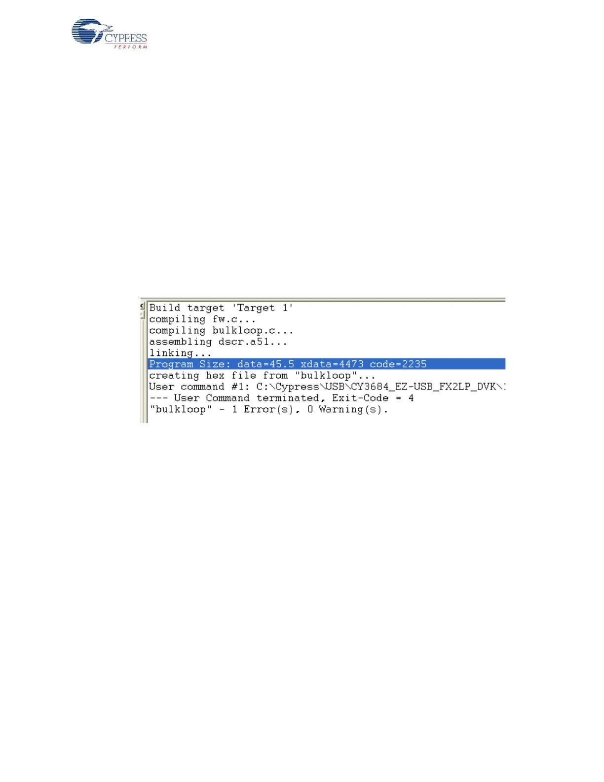■ Firmware output for EZ-USB RAM memory: The output of the Build Target is bulkloop.hex