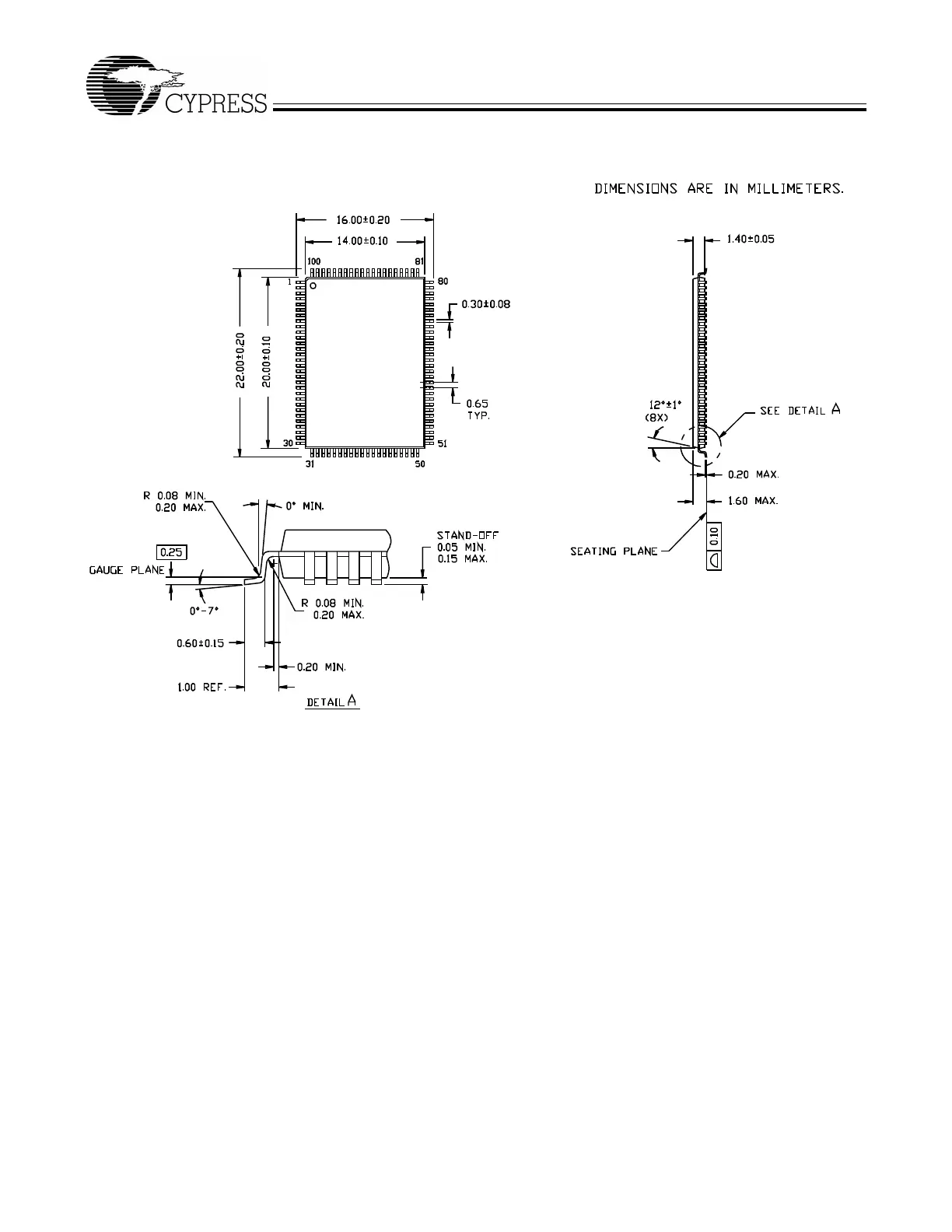 Cypress CY7C68013 - Figure 11-2. 100-Pin Thin Plastic Quad Flatpack (14 X 20 X 1.4 MM) A101