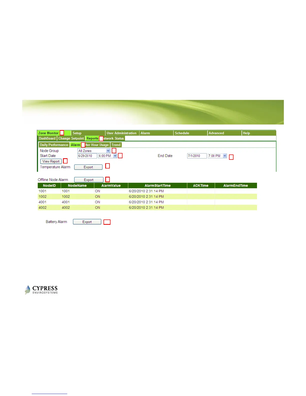 View Alarm Report