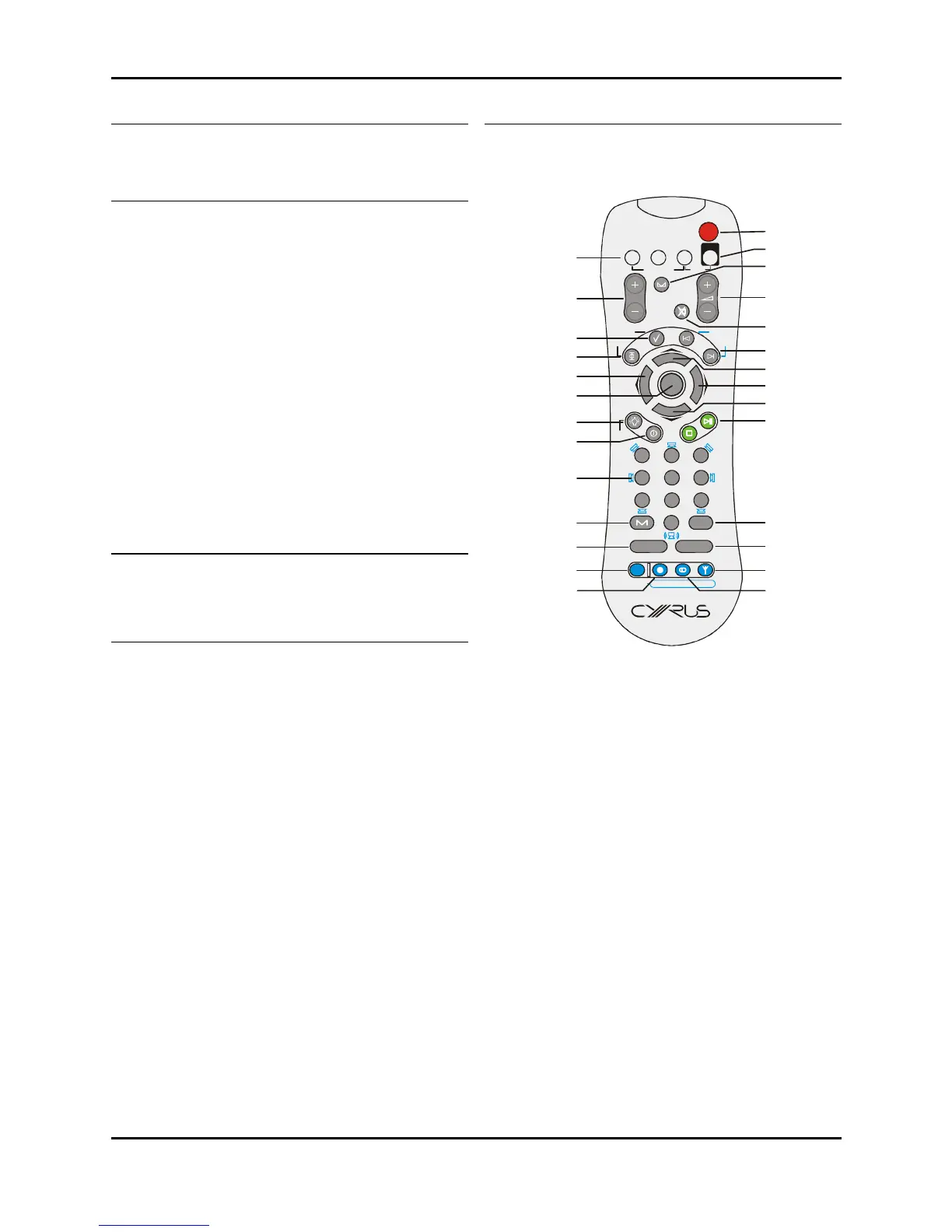 • Pressing CD will send commands to a Cyrus CD player. This key will