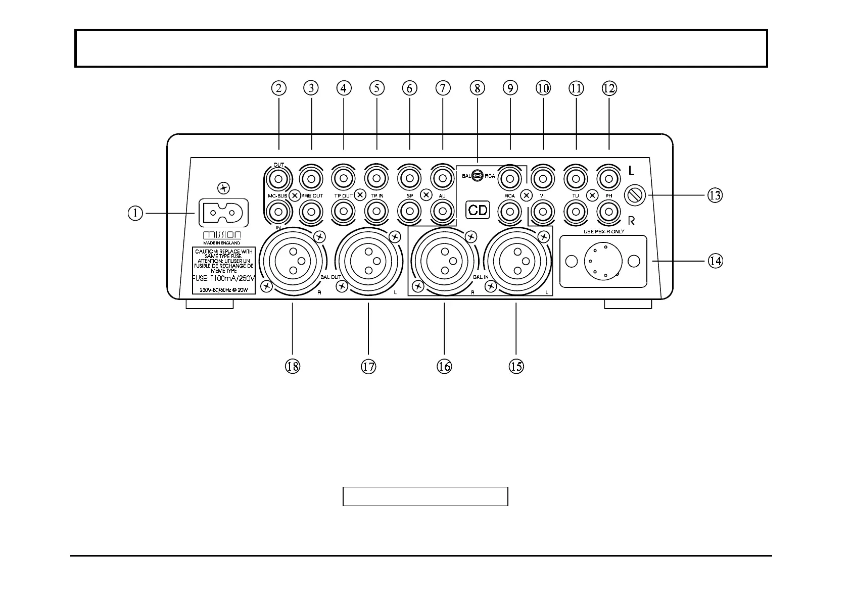 8. RCA/BAL Selector Switch for CD Input