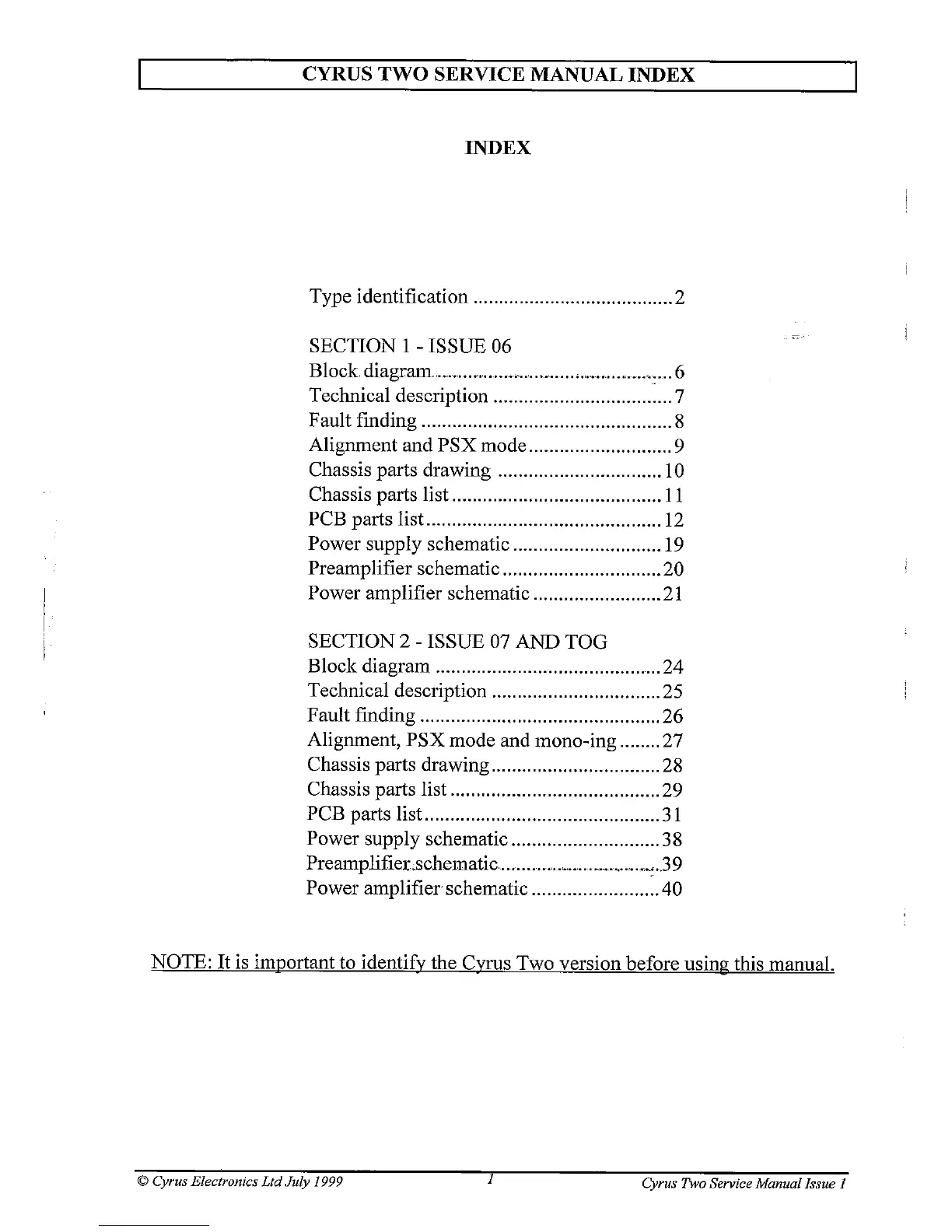 Cyrus Two - Cyrus Two Issue 06 Service Manual; Cyrus Two Issue 07 and TOG Service Manual