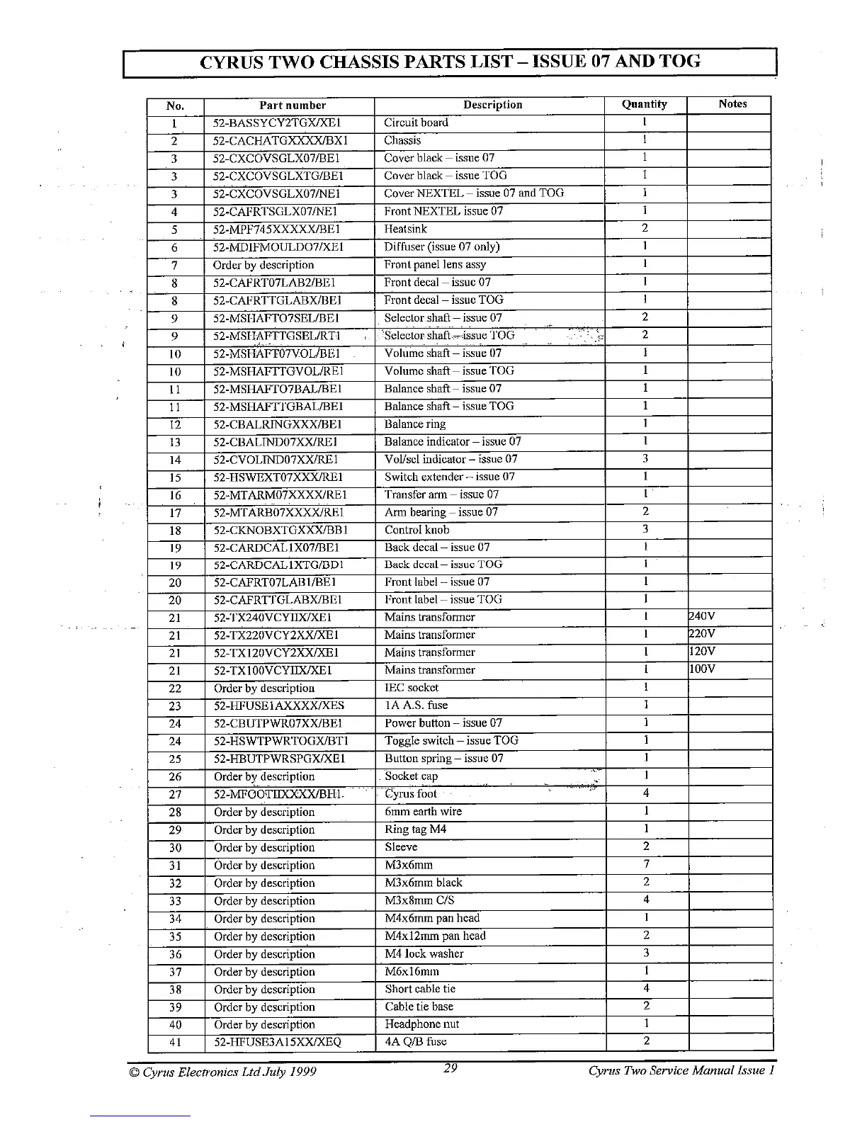 Cyrus Two - Cyrus Two Chassis Parts List - Issue 07 and TOG