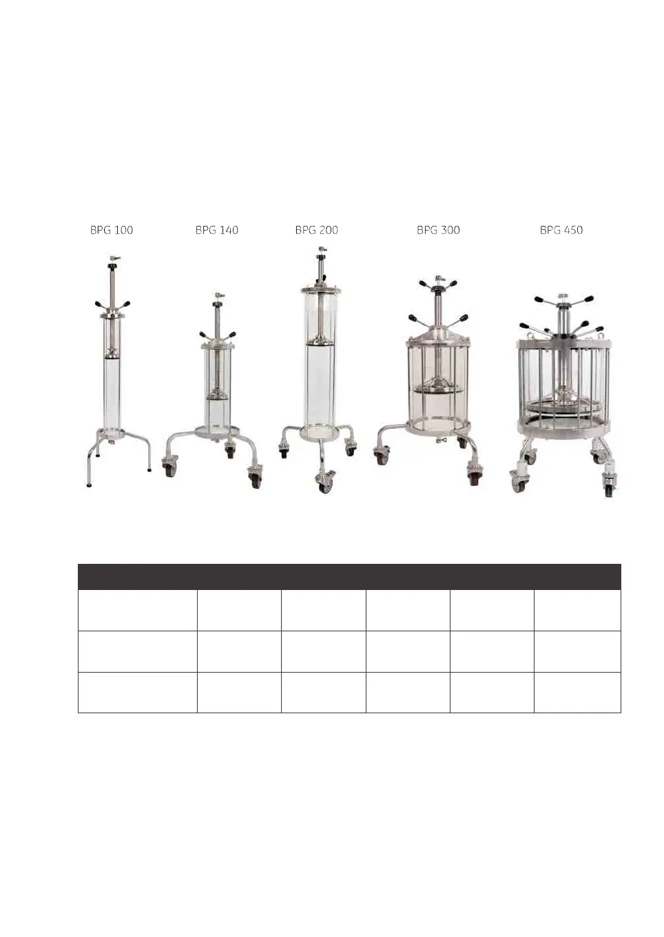 Characteristics BPG 100 BPG 140 BPG 200 BPG 300 BPG 450