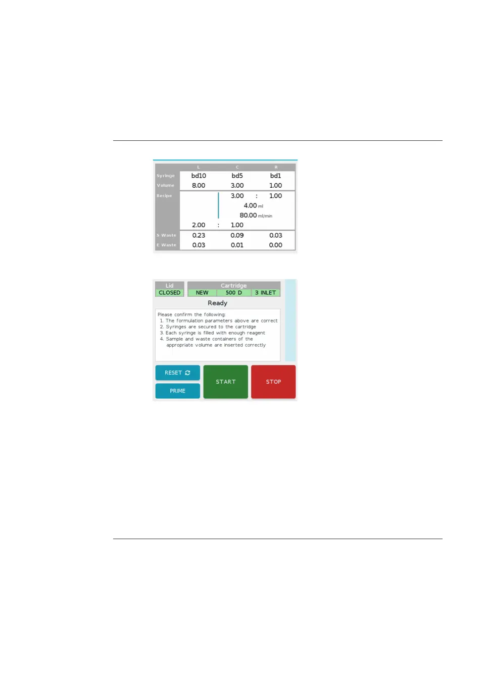 1 Review the parameters displayed on the formulation screen.