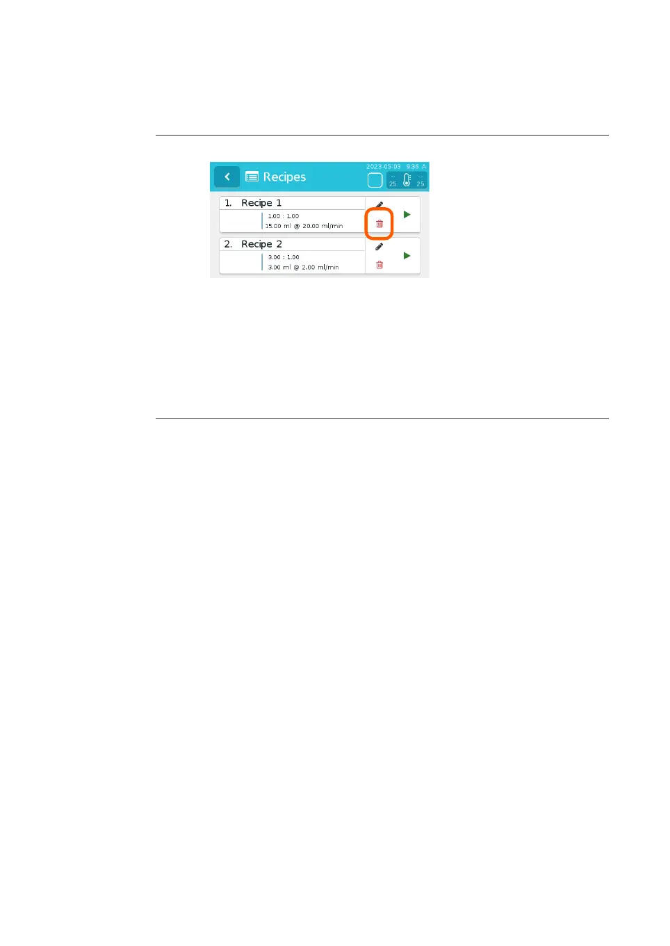 2 Tap the delete button next to the recipe.