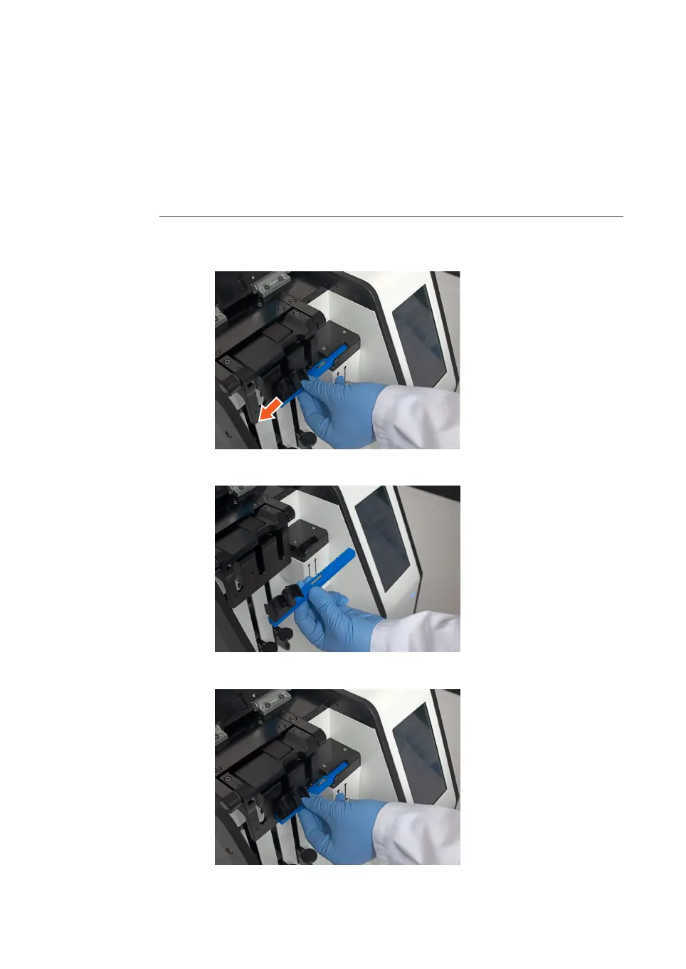 3 Hold the new sample arm with the tube holders on the left top side.