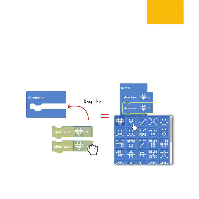 Repeat to add another [show icon] block. Snap the blocks
