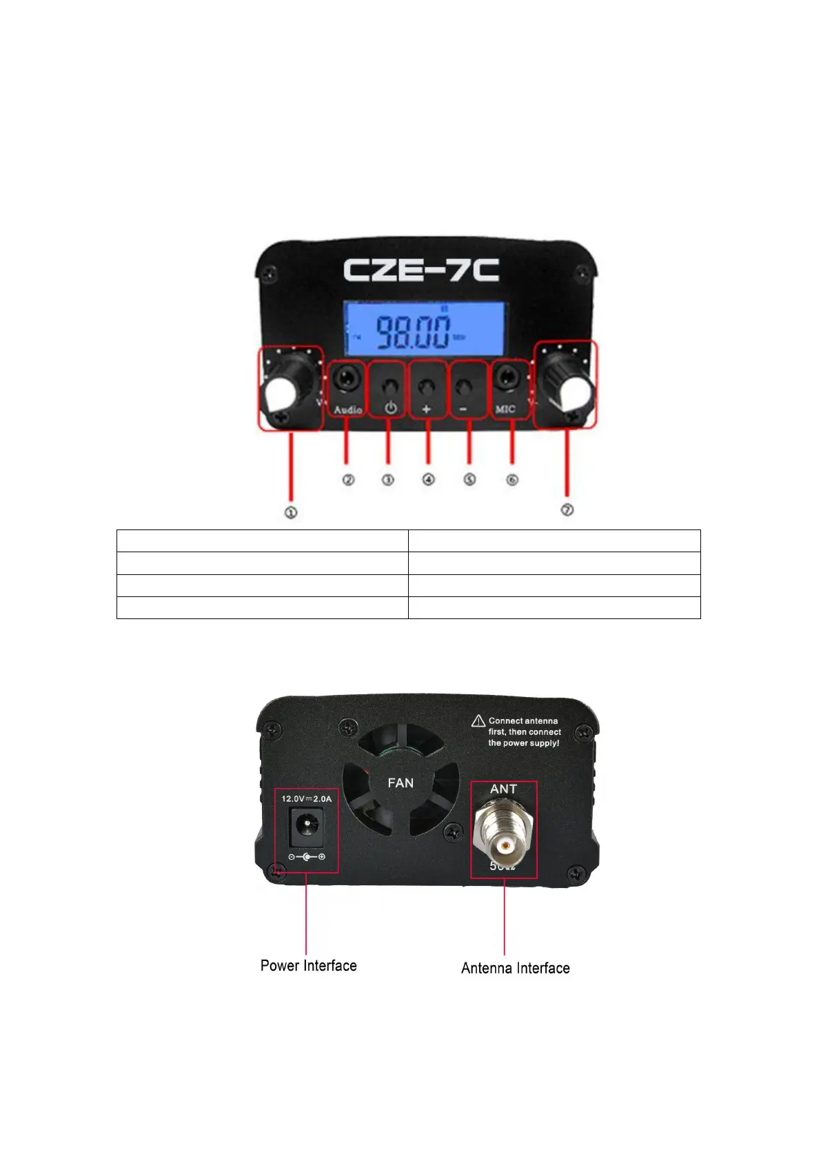 Czerf CZE-7C - Operating Instructions; Front Panel and Rear Panel Overview