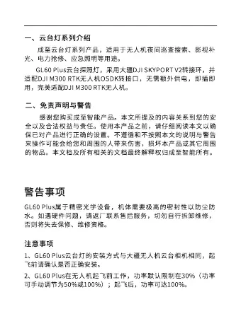 Czi GL60 Plus - 目录: 一 云台灯系列介绍; 二 免责声明与警告