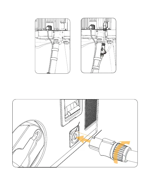 3.4.7 图示 1 处的凸块与图示 2 的槽对准后,将电源线插入,顺时针旋转,直到