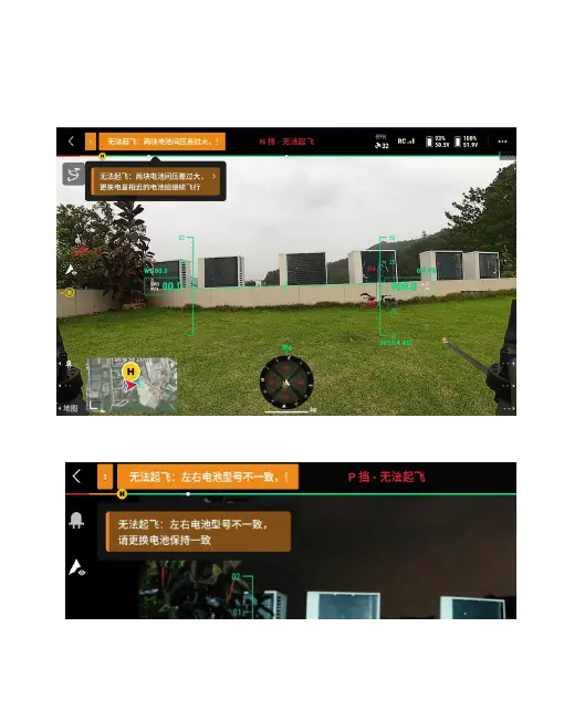 问题 8: 使用系留时,无人机下降后,遥控器报“左右电池版本不一致”怎么办?